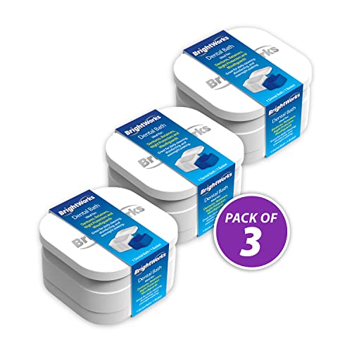 BrightWorks Dental Bath Cleaner Cup Case (3 Pack) for Dentures, Aligners, Retainers, Night Guards, Mouth Guards, Dental Guards, and Dental Appliances. Includes Rinsing Basket, Easy to Use.
