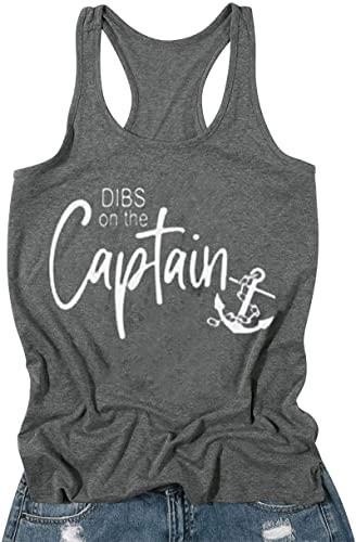 Dibs On The Captain Anchor Tank Shirt Women O Neck Loose Boat Anchor Graphic Tank Tee Beach Sleeveless Racerback Vest