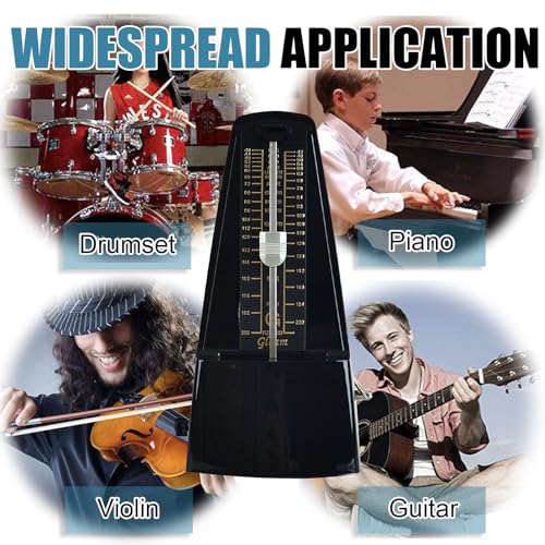 GLEAM Metronome - Mechanical Spring Power with Free Bag for Piano Guitar Violin Drums and Other Instruments Loud Sound Black