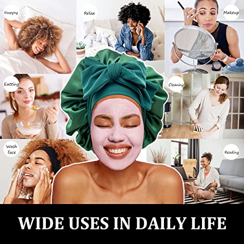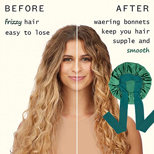 Satin Silk Hair Bonnet for Sleeping Large Bonnets with Tie Band Hair Wrap with Adjustable Straps Hair Cap Night Sleep Caps for Women Curly Braid Hair Hunter Green